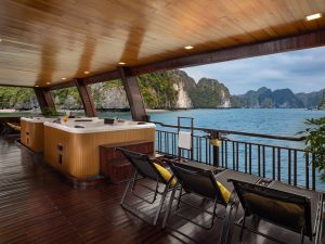 Ha Long Bar and RestaurantVị trí: Tầng 2 Sức chứa: 70 khách Bữa sáng: 07:00 – 08:30 Bữa trưa nhẹ: 10:00 – 11:00 Bữa trưa: 12:40 – 14:00 Bữa tối: 19:00 – 20:00 Danh sách đồ uống: Trà, cà phê, nước hoa quả, mock-tails, cocktails, rượu mạnh, và các loại rượu vang có nguồn gốc từ khắp nơi trên thế giới |