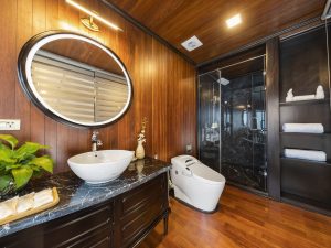 Xuất hiện như một “vì sao sáng” giữa hàng trăm du thuyền tại vịnh Lan Hạ, La Regina Grand chắc chắn là một kiệt tác nghỉ dưỡng di động trên mặt nước mà du khách không thể bỏ qua cho chuyến hải trình chinh phục kỳ quan thiên nhiên. Lấy cảm hứng thiết kế từ những nét đẹp mang đậm dấu ấn Đông Dương thời kỳ những năm 1930, du thuyền La Regina Grand sở hữu vẻ hài hòa giữa phong cách hiện đại và cổ kính tạo nên không gian sang trọng không khác gì một cung điện hoàng gia trên biển xanh. Nội thất trên du thuyền hoàn toàn bằng gỗ đem lại cảm giác ấm áp, cổ điển, vô cùng quyến rũ nhưng vẫn đảm bảo tiện nghi tối đa cho du khách. Mỗi một góc nhỏ trên du thuyền đều được thiết kế tinh tế, tỉ mỉ với đường nét trang trí mang theo vẻ đẹp truyền thống văn hóa nổi bật.